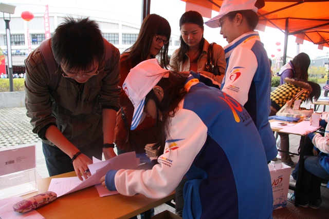 由于学校距离南汇的宾馆比较远,校庆当天,学校和我们经管学院又有很多活动,很多千里迢迢赶来的嘉宾和校友都不舍得错过任何一项活动,那么,嘉宾校友“行”的任务,就大部分落到了我们经管学院志愿者的身上。为此,学院的老师们做了周密的安排和部署,大家分工负责,各司其职,无论是企业嘉宾接待、退休教师接待、还是校友接待,以及宾馆入住、庆典大会和晚会的组织都有条不紊,井然有序。11月3日,年轻的志愿者们更是清晨6点就以饱满的热情整装待发,他们纷纷提前到达校友接待处。校庆当天,气温骤降,我们的校友接待处又在室外,很多志愿者都衣着单薄,但他们不畏寒冷,一直坚守在自己的岗位,他们美好的笑容给参加校庆的嘉宾和校友留下了深刻的印象。