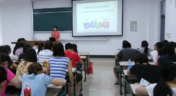2013年7月2日上午,bat365中文官方网站市场营销系“大学生创新课题中期汇报交流大会”在1105成功召开。系主任李怡芳老师、学院科创中心王方方老师以及营销系各位老师出席了本次报告会,11级,12级市场营销系的全体同学认真聆听了全场报告。