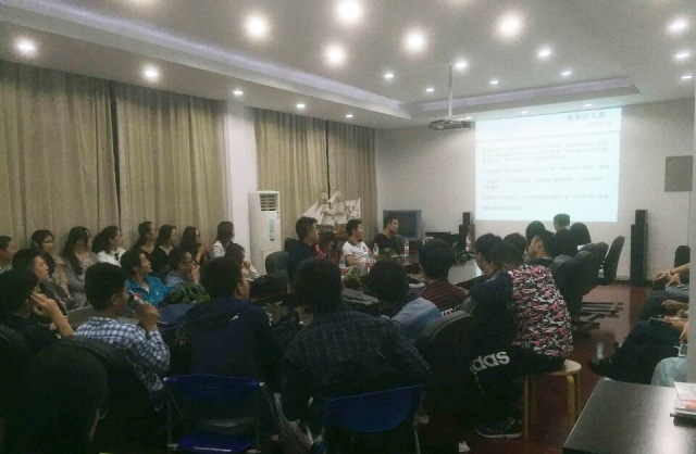 在交流会上,何林涛学长首先引用《罗马假日》中的一句话做了精彩的开场——要么读书,要么旅行,身体或灵魂必须有一个在路上。社会实践经验丰富的尹燕学姐结合自身实践经历为我们总结了“三多”、“三要”,使大家能更明确的了解研究生学习与就业的协调关系;在学术方面有卓越成绩的喻润学姐为我们讲授了掌握学科特性的重要性,激起了大家的学习热情;“赛事达人”韩照坤师兄从自身赛场经验入手,为大家强调了人脉积累和团队合作的重要性,让大家真正了解到研究生生活的意义所在;对英语有独到见解的徐文欣学姐从自身学习的经验中总结出学习英语的方法和思路,为大家以后的学位英语等考试提出了很好的建议;社会生活丰富的“志愿者达人”罗奕君学长更是从生活中引导我们,学习挖掘身边的机会,给自己准确的定位以丰富自己的生活。在最后的互动交流环节,同学们畅所欲言,积极提问,各位学长学姐尽己所能,帮助新生们解决了一个月以来生活和学习上的困惑。