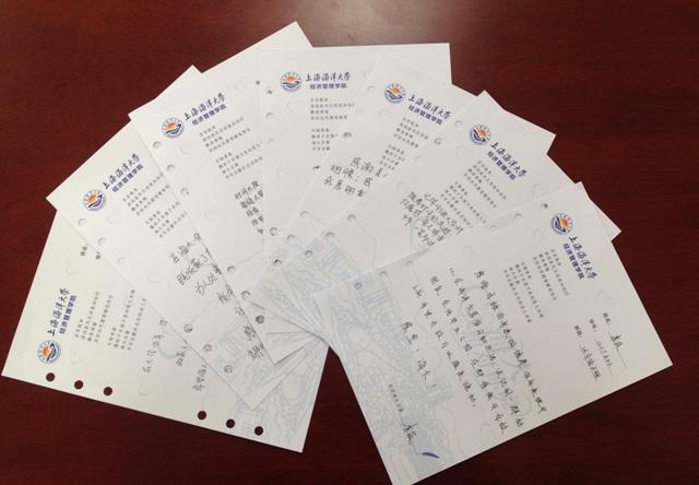 活动围绕“三个一”系列举办,即“一封情书”“一句赠言”“一场班会”。在一封情书征集活动中,同学们踊跃投稿,通过诗歌回顾与室友奋斗在通宵一教、与伙伴奔跑在夜色操场、与朋友聚餐在宽敞食堂的场景,追忆在海大生活学习的青葱时光。在一句赠言留念的活动中,学院收到全体毕业生的六百七十余份赠言和祝福,一张张白纸叙述着每个即将离校学子的不舍与感谢,也传递了同学们对自己、对老师、对母校的深切祝福。在一场班会的召开过程中,毕业生抓住最后的发言机会,或感叹时光飞逝,缅怀进校时的雄心壮志;或惋惜即将毕业仍留有许多遗憾,纷纷向辅导员和同班同学畅谈离校体悟,如一位毕业生所言:“我最美的时光在这里度过,大学再见,我会带着感恩前行!”