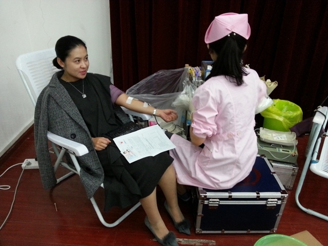 2016年10月25日、26日,王强老师和李欣老师顺利完成了无偿献血工作。