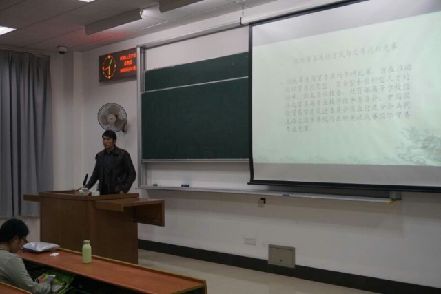 领梦人华阳提醒在座同学应多多参与校、市、全国级别的商业、科研比赛,不断锻炼自己。他向大一新生简要介绍了几个竞赛,例如国贸专业的专项比赛——国际贸易展销方式与交易谈判竞赛、“用友杯”全国大学生创业设计暨沙盘模拟经营大赛等其他较为重要的赛事。