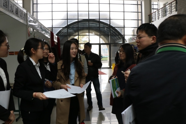 阴雨连绵的天气阻挡不了同学们对展销赛的热情。4月11日,bat365中文官方网站国贸学习发展中心在二教底楼大厅开展了第六届国际贸易商品展销与交易谈判竞赛。