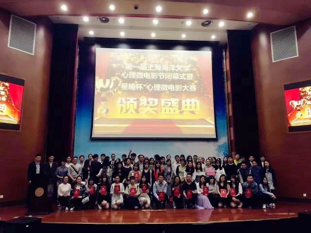 本次颁奖典礼由各参赛团队的入场仪式转播开场。他们携手依次走上场外的“星光大道”,伴随着主持人对团队及其作品的介绍步入会场的过程转播到场内大屏幕。颁奖典礼正式开始后,学生处副处长晏萍为颁奖典礼致辞。在场的领导、老师和同学们共同观看了“星瞳杯”心理微电影大赛的历程回顾,经由校内外具备心理学、广播电视学、新闻学专业背景的专家和老师组成的大赛评委会评审,结合心理微电影大赛的易班快搭平台和微信公众号的线上投票情况,评选出本届大赛特等奖1名、一等奖2名、二等奖3名、三等奖5名、优胜奖15名、单项奖六个,分别是最佳导演奖、最佳剧情奖、最佳制作奖、最具人气奖、最佳男主角、最佳女主角。最终2016级金融2班作品《灰》摘得大赛桂冠,获得特等奖。该片同时荣获最佳制作奖,影片导演史舸被评为最佳女主角。《安世与静文》、《我的朋友》获得大赛一等奖,研究生团队拍摄的《缘来是你》获得最佳人气奖。专业课老师和辅导员们也积极参与了心理微电影的角色刻画,拉近了师生的距离。每一部获奖心理微电影精彩剪辑放映后,都有心理学老师的专业点评,给同学们的成长困惑指引方向。同学们在心理微电影中寻找自己的影子,透过影片去观察自己的生活和成长,学习面对成长的困惑和挑战。老师们观看后也对同学们的心理有了更多的了解,对以后开展工作非常有帮助。颁奖典礼上获奖团队上台的感言中,同学们认为“星瞳杯”心理微电影大赛对他们而言是一次非常有意义的活动,通过这次活动,他们开始学习去观察、了解并认真思考学业、爱情、人际关系、职业生涯这些人生课题,从而明确了大学期间更多的努力方向,是自己成长的一次很好的契机。大赛最后由大学生心理健康研究与教育中心副主任秦向荣老师进行点评总结。每一部作品都是一个丰富的世界,每一个镜头都有其背后的故事,一部部心理微电影作品,见证的不只是剧中人物的蜕变,更是海大学子的蜕变。