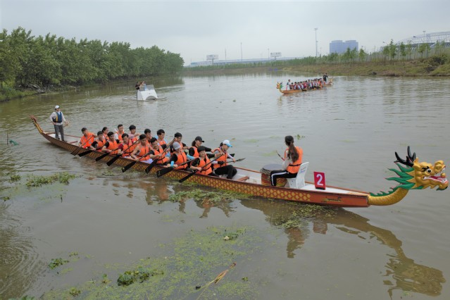 上午九点,虽然天灰蒙蒙的,在bat365中文官方网站清水码头,令人瞩目的龙舟比赛正如火如荼地展开。参赛的同学们个个身上带着蓬勃的朝气,势在必得。平日里在讲台上专注授课的老师们也都“宝刀未老”、“恰同学少年,风华正茂”,跃跃欲试。