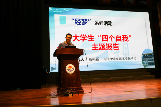 商利新副书记对新生的到来表示欢迎,并就大学生的“四个自我”作了主题报告。他指出“自我管理、自我服务、自我监督、自我教育”贯穿于大学生活的每一环节,新生应该培养良好的学习习惯,增强责任感和自律意识。商老师还为同学们详细解读了新版《学生管理服务手册》的重点内容,希望同学们脚踏实地,利用好四年时光,为将来创造更多机会和选择。
