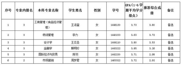 根据《bat365中文官方网站2018年推荐优秀应届本科毕业生免试攻读硕士学位研究生工作实施办法 》的意见和《bat365中文官方网站关于2018年优秀本科毕业生免试攻读硕士研究生的推荐办法》规定,物流管理专业推免名单和各个专业备选人名单如下: