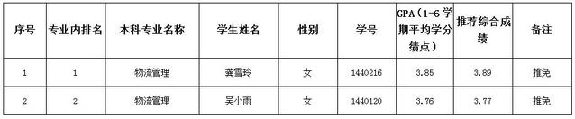 一、物流管理专业推免名单: