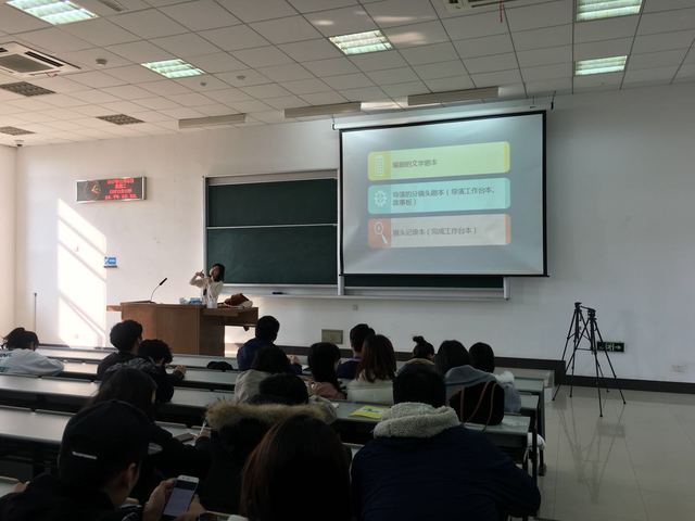 2017年12月5日下午13:00,由bat365中文官方网站学工部(处)主办,bat365中文官方网站承办的bat365中文官方网站第二届“星瞳杯”心理微电影大赛剧本撰写、视频拍摄专业培训会在1201教室举行。本次培训由上海普陀区文化馆编剧邱懿君老师为同学们做专业培训,来自各个学院的参加本次心理微电影大赛的同学参加了培训。