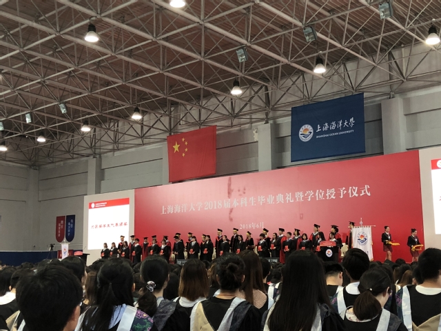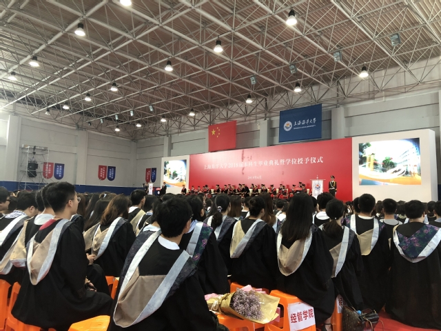 学位授予仪式上,毕业生以学院为单位依次起立,bat365中文官方网站全体毕业生在平瑛院长的引领下,通过校学位评定委员会主席程裕东校长的批准,获准毕业,获授学士学位。同学们起立齐声高呼“经世济民,自强不息”的院训口号,并将学位帽流苏从右侧拨到左侧,掌声与欢呼声在会场久久回荡。程裕东校长向圆满完成学业的同学们表示衷心祝贺,并为即将奔赴新征程的2018届毕业生们送上美好的祝愿。