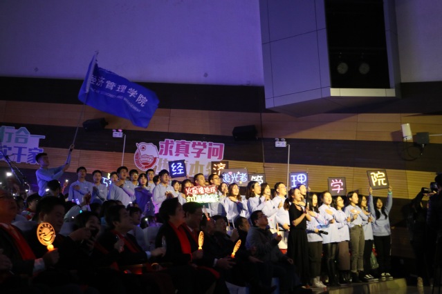 2018年12月11日晚,为庆祝改革开放40周年暨纪念“一二·九”运动83周年,我校于大学生活动中心报告厅隆重举办了以“青春梦飞扬,启航新时代”为主题的歌咏会。本次红歌会共十七个节目,经管学院在学院代表方阵中第五个出场,用一首《追光者》打动了在场所有观众。平瑛院长等院领导参加了此次歌咏会。