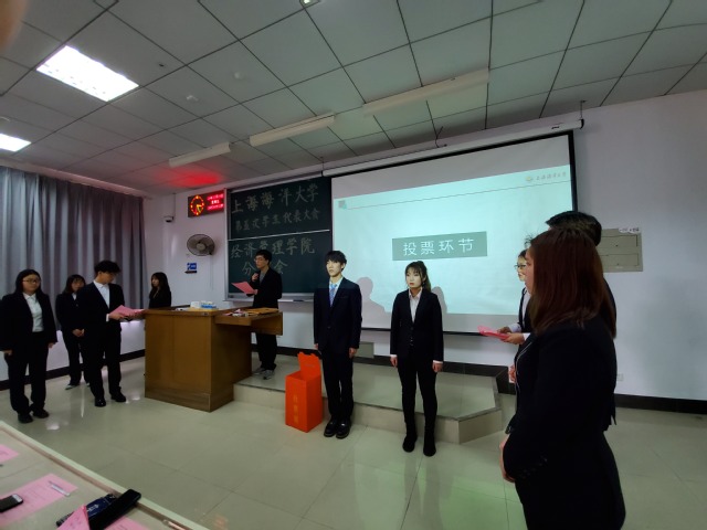 本次学代会学院学生代表秉承公平、公正的原则选举产生了53位出席校第五次学代会正式代表,会议在全体学代表热烈的掌声中落下帷幕。