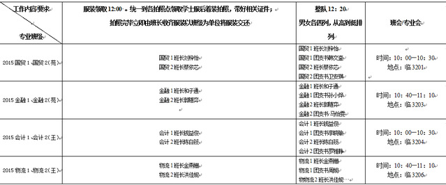 l12:00,各班到指定地点领取服装(图文信息中心正门广场);