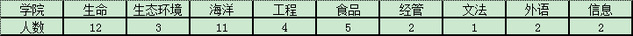 表1:中国海洋大学专业及人数表(仅限2018级)