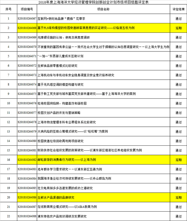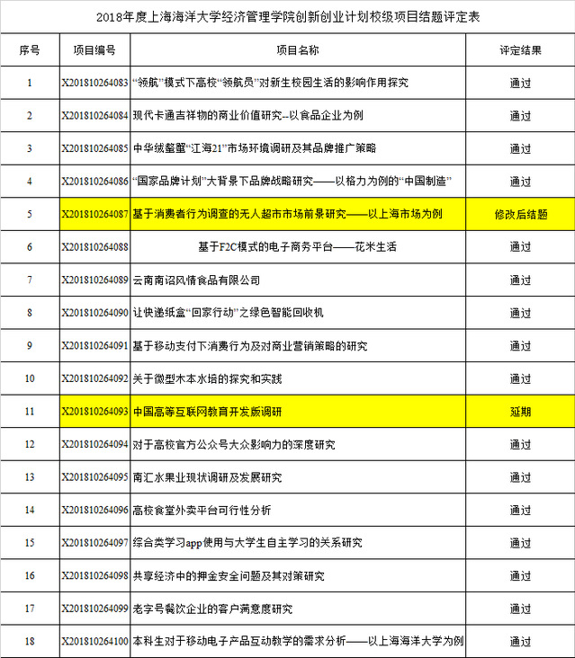 结合其他项目组的结题材料及成果,我院2018年度大学生创新创业训练计划项目共按期结题35项(市级19项、校级16项),延期4项(市级3项、校级1项),修改后结题1项。结果如下: