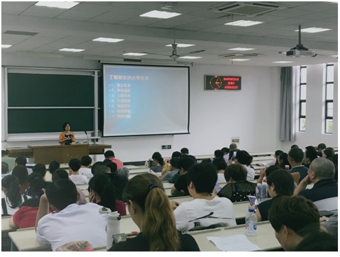 商老师从学校概况、学院发展状况、学生管理与服务等方面向新生家长做了情况介绍。并就大学生思政教育、入学适应、心理健康教育和《管理服务手册》有关规定等与家长进行了进一步的沟通。