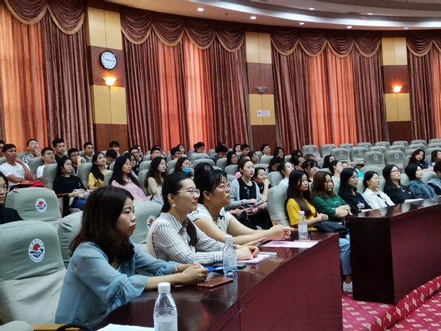 院党委书记张登沥向2019级研究生新生的到来表示热烈地欢迎,并叮嘱他们要有坚定的理想信念、重视学术研究培养创新能力、确立奋斗目标做好生涯规划、不断学习实践练就过硬本领。副院长陈廷贵指出,临港发展迅速,从海洋走向世界,从海洋走向未来不是梦,希望大家能够勤奋好学,努力向上,热爱生活。院长杨正勇从“学校介绍、学院概况、科研学习”三个方面详细地介绍了我校和我院的整体情况,并教导新生遵以“勤朴忠实”之校训,融以“经世济民”之情怀,浇以辛勤耕耘之汗水,塑以坚忍不拔之意志,努力成为国家的栋梁之“才”。