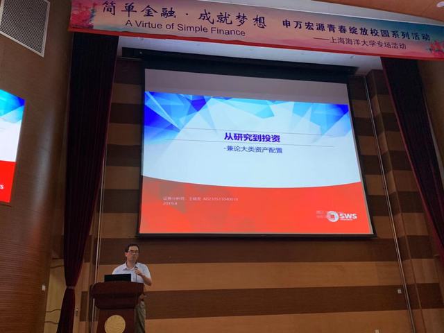 申万宏源理财研究总监李念和申万宏源理财研究部高级分析师王晓亮分别带来了“经济转型背景下的A股投资策略”和“从研究到投资——大类资产配置”两场主题讲座,此外申万宏源人力资源部的张凡老师还给学生介绍了申万宏源证券历史并交流了证券行业的职业路径与规划。讲座后嘉宾们和同学们进行了热烈的互动,在同学中产生了良好的反响。