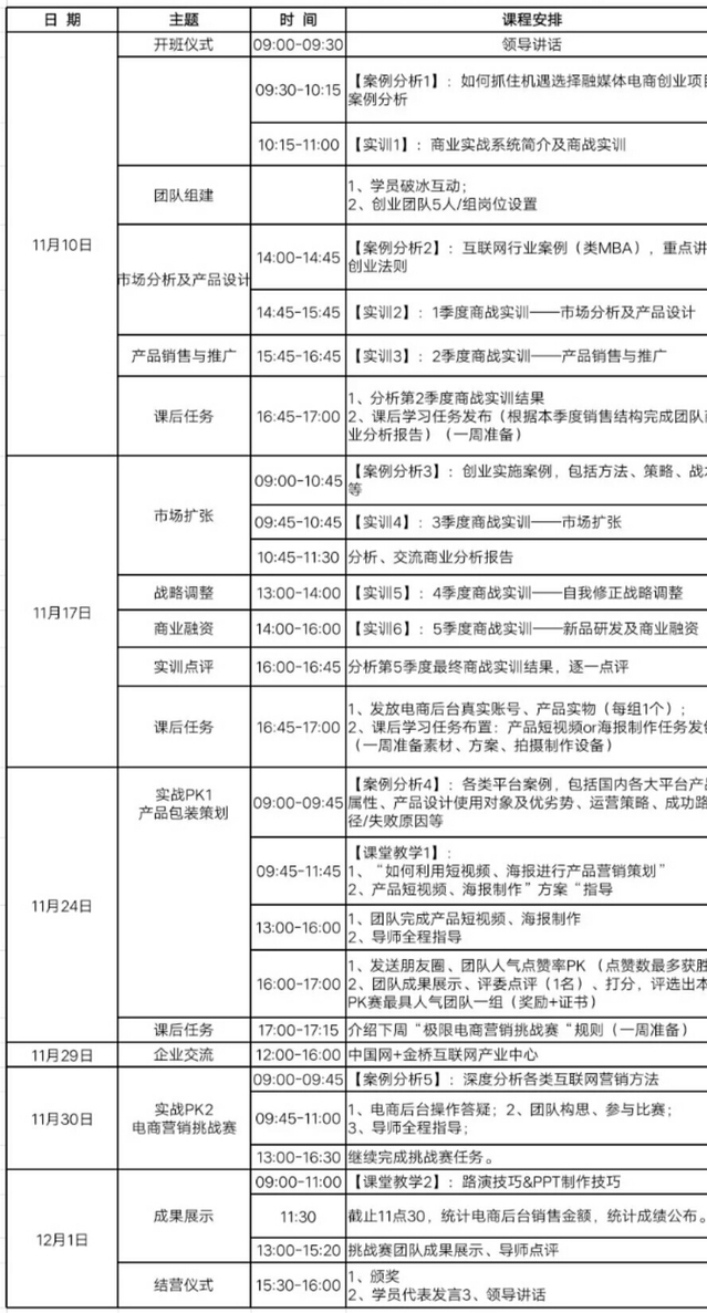 本次训练营共分为三大板块,分别是理论课程+企业交流座谈+创意营销大赛。