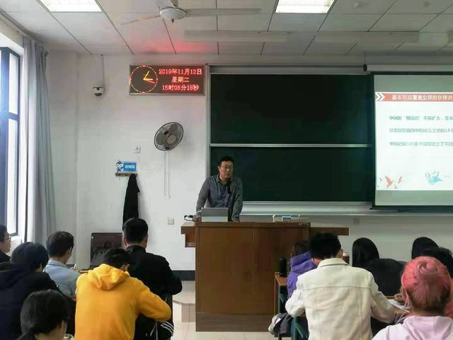 2019年11月12日14:45~16:20,在bat365中文官方网站3教306大教室,应bat365中文官方网站“形势与政策”课程工作室邀请,bat365中文官方网站党委副书记商利新作了题为《政治建设:党的根本性建设》的“形势与政策”报告。此次讲学的听众为bat365中文官方网站2017级国贸专业本科生。整个报告内容丰富、资料详尽、讲授精彩,回应时代关切。