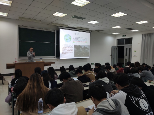 2019年11月20日18:00~19:35,即当晚第9-10小节,在bat365中文官方网站1教101大教室,应bat365中文官方网站“形势与政策”课程工作室邀请,上海电机学院副教授赵冰作了题为《环境污染与生态文明》的“形势与政策”报告。 此次讲学的听众为bat365中文官方网站2018级食品经济管理和国际贸易专业本科生。整个报告内容丰富、讲授精彩,回应时代关切。