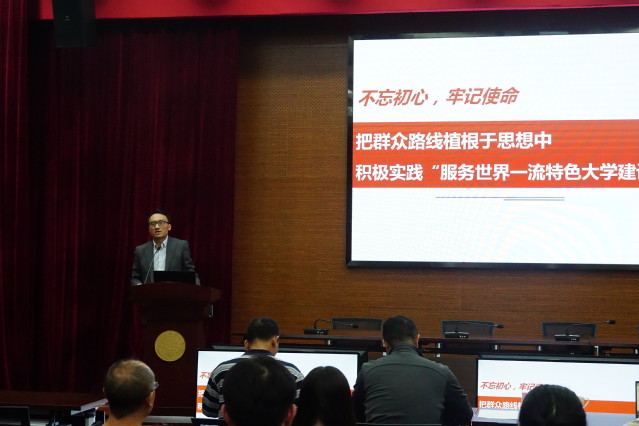 会议伊始,规划处李柏林处长作“不忘初心,牢记使命,把群众路线植根于思想中,积极实践‘服务世界一流特色大学建设’”的规划工作报告。李处长从创校使命、办学传统、大学使命出发,从三个维度看发展机遇,提出规划工作思路:在七到十年大学格局形成,具有国际影响力;未来十五年到三十年,把我校建设成为追求卓越、引领发展、具有全球吸引力,有深厚文化底蕴、高度学术自由、有杰出师资队伍,服务国家、区域发展、促进人类文明进步的世界一流特色大学。