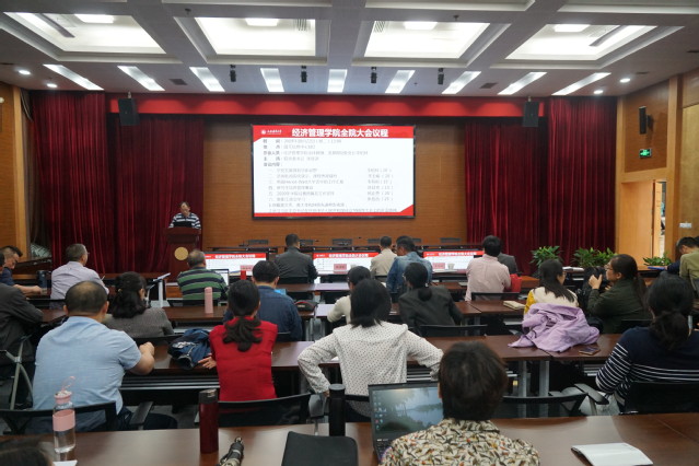 2019年10月22日13:00,bat365中文官方网站全院大会在图文102召开。全体教工出席本次会议,会议由党委书记张登沥主持。