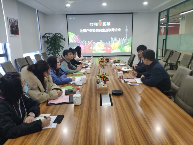 本次调研的主要目的是了解当前生鲜农产品线上零售情况。李玉峰副院长首先向叮咚买菜简单介绍了此次调研的目的与内容,之后叮咚买菜政府事务经理陈茁简单介绍了叮咚买菜的发展历程,政府事务副总裁崔巍和政府事务副总监张鹏分别从线上销售、食品安全、市场定价、物流配送等方面详细介绍了叮咚买菜的运营管理方面的内容。最后,双方就叮咚买菜未来发展计划以及政策诉求等方面进行了充分交流。