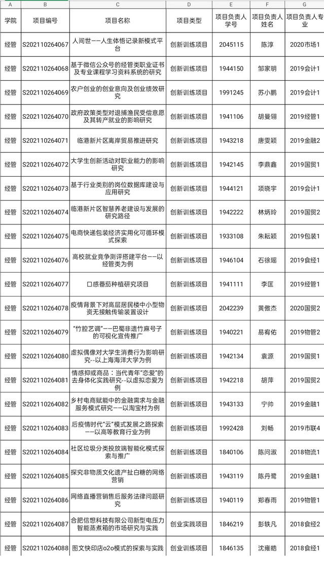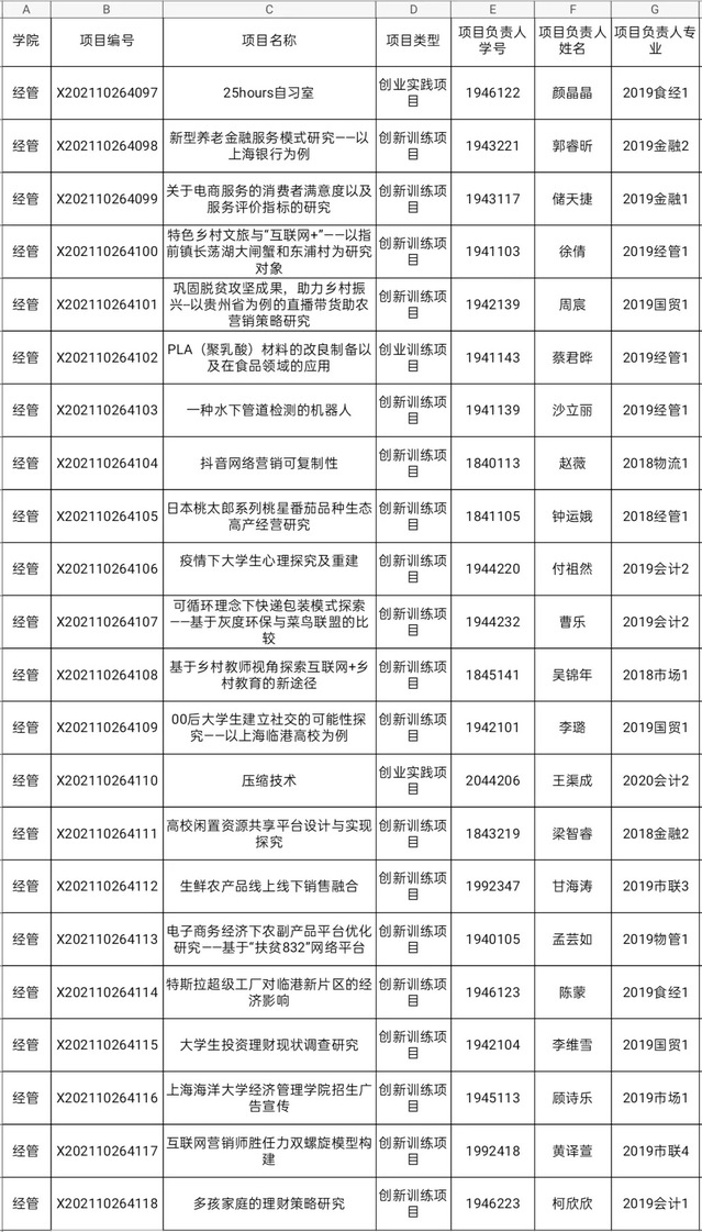 经学院推荐,教务处审核,bat365中文官方网站2021年度市级、校级大学生创新创业训练计划项目立项公示如下: