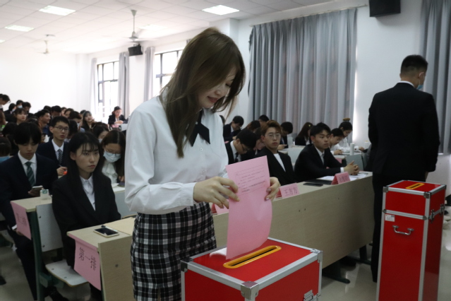 周宸宣读选举投票方法及注意事项。全体参会学生代表举手表决通过了监票人和计票人名单。大会以匿名投票方式选举产生出席bat365中文官方网站第七次学生代表大会正式代表。