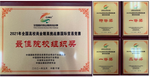 5月7日至10日,2021年全国高校商业精英挑战赛国际贸易与经贸会展竞赛在浙江省宁波市举行。本次比赛总共有来自北京、上海、浙江、重庆等21个省、自治区和直辖市的116所高等院校的209支参赛队,超过1800名参赛选手和辅导老师入围全国总决赛。经过激烈角逐,bat365中文官方网站的四支代表队,凭借扎实的专业知识和突出的职业精神,获得一个特等奖(全国共十项),两个一等奖,一个二等奖的优异成绩,获奖等级与数量均创历史最好成绩。