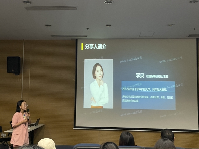 李贝介绍了德邦物流公司的基本情况、企业文化和主要业务,企业计划从数字化赋能客户、管理、员工三方面推动转型,她表示希望更多的新鲜血液注入公司,介绍了“海豚计划”、晋升路线和培养计划,以优秀海豚生魏清榕、金凌宇为例讲解了如何从基层部门成长为事业部总裁和高级总监。同时讲解了德邦物流完善的培训体系和驱动个人不断成长的薪酬福利,更好地让大家全面的了解到德邦物流公司。