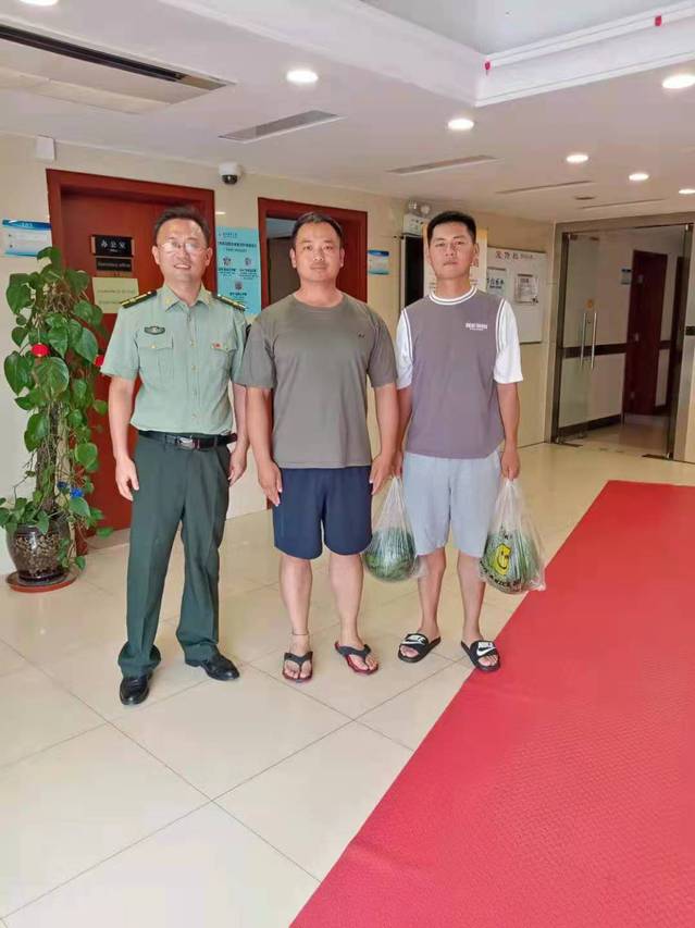 所到之处,指导员一边与军训教官亲切交谈,一边将西瓜亲切地送到大家手中。大家对高温下军训的教官致以亲切慰问和崇高敬意,对大家兢兢业业刻苦工作的态度表示高度赞赏,叮嘱大家当前高温季节要做好各项防暑降温工作,合理安排好军训和教学时间,确保学生军训安全平稳。