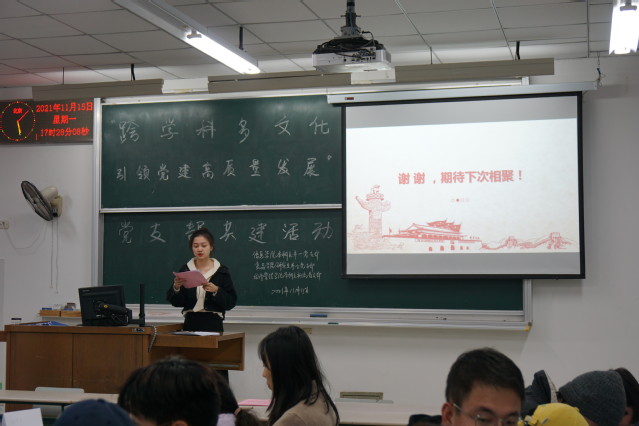 为深入开展党史学习教育,落实我为群众办实事要求,促进多学科交叉融合,立足新发展阶段,贯彻新发展理念,构建新发展格局,2021年11月15日下午,“支部共建聚合力,学科交融谱新篇” 联合主题党日暨党支部共建活动在第二教学楼举行。bat365中文官方网站本科生物流党支部、信息学院本科生第一党支部、食品学院研究生第七党支部党员、入党积极分子参加。