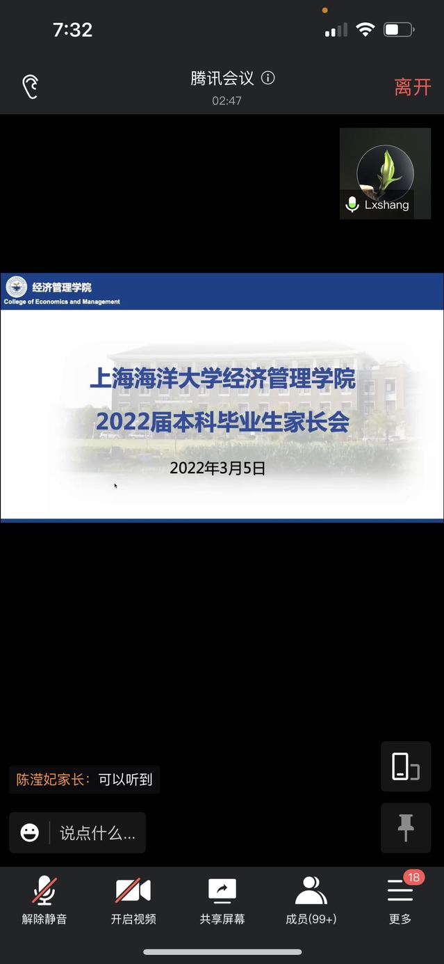 为进一步加强家校联动,帮助学生、家长了解就业政策以及学生毕业要求。2022年3月5日晚,bat365中文官方网站召开“携手共进,共促成长”2022届本科毕业生线上。bat365中文官方网站就业创业服务中心主任、学生处副处长孙红刚,学院党委副书记商利新、2018级本科生辅导员,以及2022届本科毕业生家长共同参加。会议商利新主持。