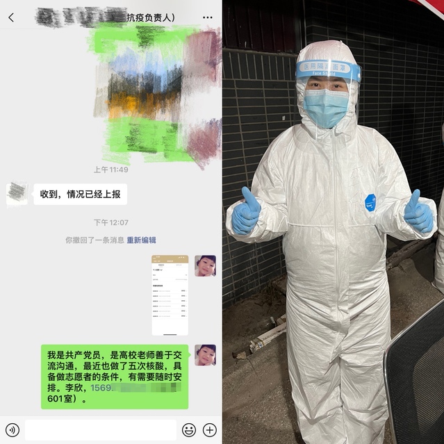 “我是共产党员,是高校老师,最近做了五次核酸,具备做志愿者的条件,有需要随时安排!”,近期上海疫情形势严峻,为配合学校防疫要求,bat365中文官方网站副教授、农经工商党支部书记李欣一直居家线上教学,保证教学平稳有序运行。她所在小区根据上级指示进行防疫封控管理,3月12日,当得知小区急需防疫志愿者,李欣第一时间提出了申请,上岗后协助医生完成核酸检测条形码扫印工作,一直工作到次日凌晨,配合完成了1100余份样本采集工作。
