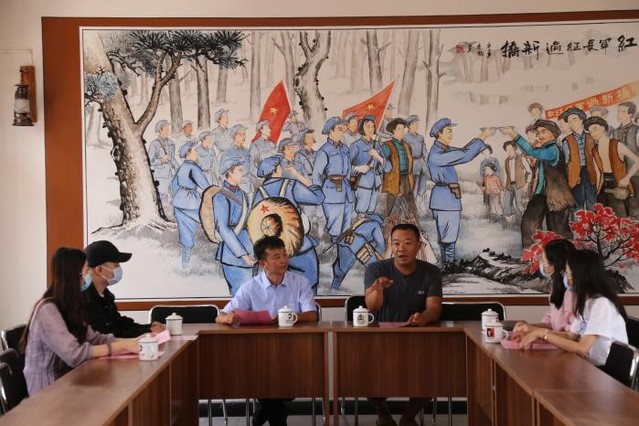 参观闻知村红心学堂,团队成员穿过挂满朱红色木头展板的楼梯和走廊,党的一大至十九大会议精神历历在目,重温党史,愈加坚定以“党建构网”,才能营造优质的乡村振兴大环境。马厂村村监委会主任和闻知村村长与实践队成员在二楼会议室进行深刻讨论。乡村振兴一是要狠抓组织建设,全面落实党支部工作联系点制度,定期研究工作,解决突出问题,推动工作落实;二是要硬抓经济发展,强化项目带动和资金保障,构建出坚实的经济发展平台。