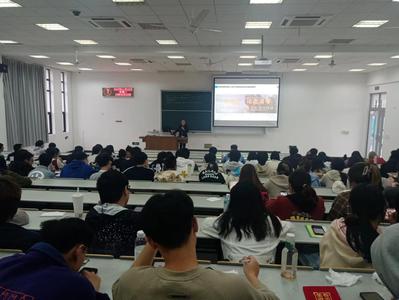 整个会场秩序井然。罗汝坤以2020年新冠肺炎疫情形势和防控为切入点,运用图片、视频等资料再现今年上半年学校师生团结一心、共同抗疫的生动画面,结合自身在疫情防控中的体会,让同学们对国家和学校疫情防控有了更全面深入的了解。随后,罗汝坤对我国经济社会稳中向好的形势做了阐释,希望同学们结合自身职业发展,找准自身定位,结合国家和区域经济社会发展的需要,做新时代的有为青年。罗汝坤讲课娓娓道来,生动形象,时而轻松幽默、时而庄重严肃。