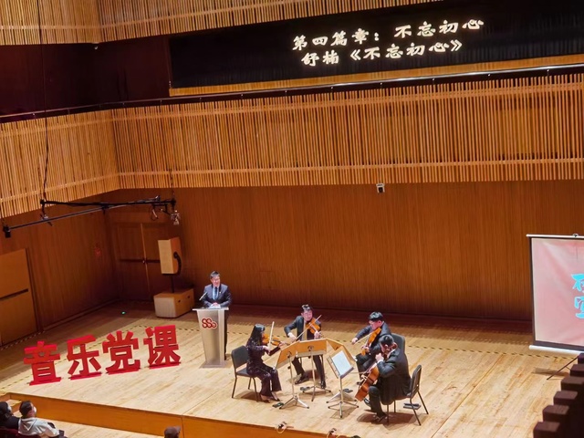 一名主讲人与四名演奏家的组合让本次音乐党课形式新颖独特,机动性和适应性较强,将宏大历史叙事与创作背景理念有机融合,将交响音乐与党性教育有机结合,时而深情时而豪迈,以曲为线回忆百年党史,进而感悟中国共产党人的初心和使命。