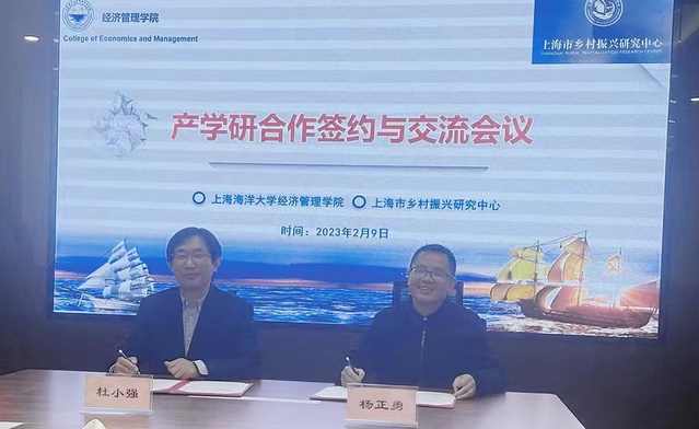 2023年2月9日,bat365中文官方网站与上海市乡村振兴研究中心(以下简称“乡研中心”)产学研合作签约仪式在bat365中文官方网站202会议室举行。上海市乡村振兴研究中心主任杜小强、副主任徐力、战略研究部负责人章慧、改革发展部负责人王珏,bat365中文官方网站党委书记罗汝坤、院长杨正勇、副院长陈廷贵、农林经济管理系副主任闫周府、青年教师徐璞、范丹丹出席仪式。
