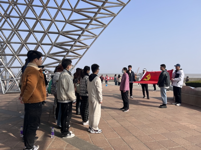 三月的东海之滨,艳阳高照,春风习习,南汇嘴观海公园的司南鱼雕塑在阳光的映照下熠熠生辉。2023年3月5日bat365中文官方网站的新党员在司南鱼雕塑广场进行了入党宣誓仪式。司南鱼对于出海航行的人而言,能指明回家的方向,今天在司南鱼雕塑的见证下,新党员面向鲜红的党旗庄严宣誓,以铮铮誓言表达对党的无限热爱、无限忠诚。