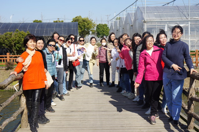 在农场,教师们听了农场负责人的介绍并实地参观后,对上海新农村的建设和家庭农场的发展有了进一步的认识。近期正是草莓成熟季节,在草莓种植大棚里,教师们尽情感受春天的美好,大家亲近自然,体验采摘乐趣,充满欢声笑语。
