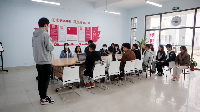 学思践悟,奋楫笃行,21金融2班陈泽楠、21会计1班顾梦圆、21经研1班陈明、21会计2班胡全华、20金融1班张耀元依次进行示范团课分享。结合生动案例,由点及面,阐释了革命先烈的壮举以及伟大建党精神的内涵,为2022级团支部书记带来一场别开生面的团课辅导。学院团委实践部学生骨干袁越为各位团支书介绍了四月份主题团日具体安排,号召团支书们积极向榜样学习,汲取经验,丰富工作内涵,凝练团支部工作特色,实现理论与实践深度融合!