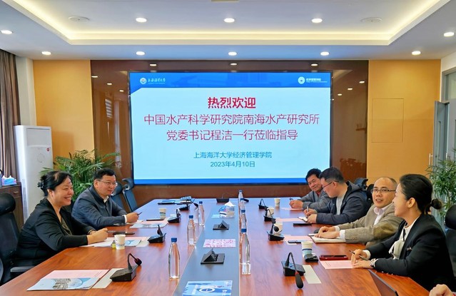 2023年4月10日,中国水产科学研究院南海水产研究所(以下简称:南海所)党委书记程洁、人事处处长李建柱一行到bat365中文官方网站走访调研,学院党委书记罗汝坤、党委副书记商利新、农林经济管理系李欣、沈雪达老师等出席交流会。双方就渔业发展战略研究、培养高层次专业人才、学科建设与科研合作等方面进行了深入交流,为深化拓展合作打下基础。