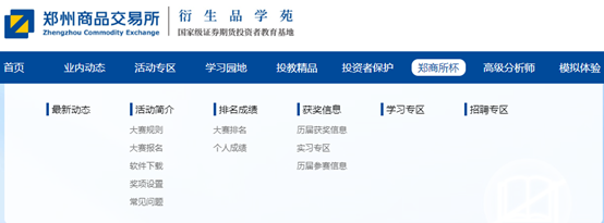 1.报名网址 https://edu.czce.com.cn/进入衍生品学院,找到郑商所杯→大赛报名。