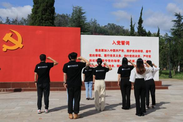 “我为什么要入党?”是建党以来,每个对党心生向往之人的内心之问。在牟定县党建文化主题公园,学校实践团与共青团牟定县委党支部共话党建,在初心亭下回望初心使命,再度描摹心中的红色印记,在初心路上寻找那镌刻于共产党人血脉之中的答案。团队还与云南大学实践队不期而遇,“你们也在这里开展实践学习吗?”两队成员几乎是同时向对方问出这句话,之后相视而笑,而答案似乎也不言自明,“一片丹心向党,这样的青春才不迷茫”,在热情的讨论声中,两队成员更加坚定了紧跟党走的初心。