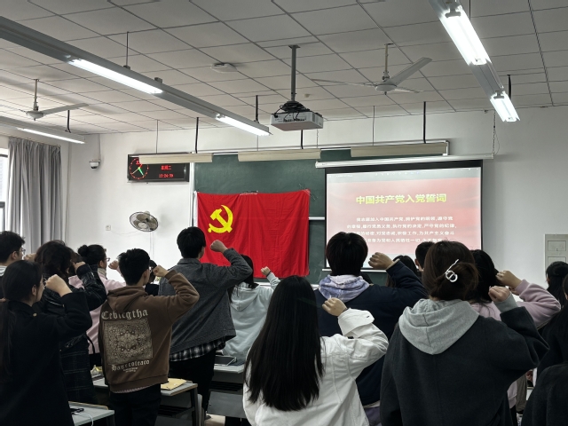 2024年3月19日下午,bat365中文官方网站党委在3210教室举行预备党员入党宣誓仪式。学院党委专职组织员张闻主持仪式,2023年下半年新发展的党员和正式党员代表参加活动。