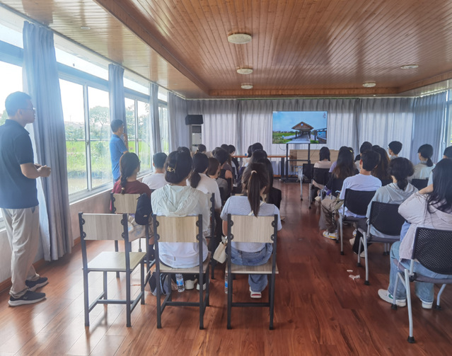 实地研学环节,农林经济管理专业副教授张振宇带领学生走出校园,先后赴上海浦东微谷直播基地和上海沐雨农庄参观学习。在直播基地,院长温迪和基地带教老师为同学们介绍了直播流程和要点,多名同学即兴发挥进行现场模拟直播展示,临场表现获得一致认可。在田间课堂,上海沐雨农庄稻鱼共生基地负责人沈竑详细讲解了“生态共生”理念,以稻鳖共生模式和林下跑道鱼为例,分享了企业发展生态农业的经验及面临的挑战。同学们实地参观了水稻+小龙虾、甲鱼、黄鳝等共生模式,还品尝了有机稻米、农庄自产蔬菜等绿色农产品。