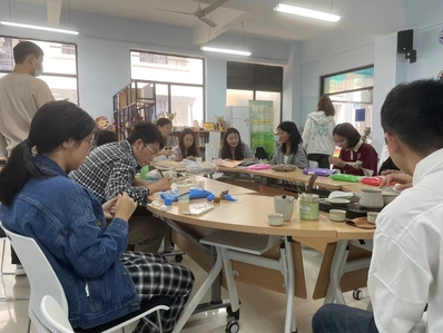 活动场地中茶香四溢,鹿鸣茶艺社为同学们细细讲解传统茶文化的特点与内涵:乌龙茶、古树红茶、小青柑……并一一浸泡出来让同学们品鉴,深刻感受中华茶文化的博大精深。手工,品茗,欢语,乐趣,粘土与茶的碰撞让大家度过了一个难忘的午后。