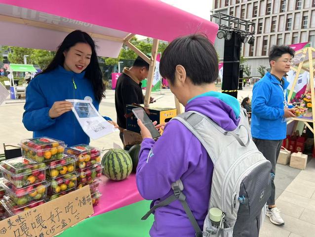 “餐餐有蔬菜,每天300克”“平均每天12种以上食物”……展销活动不仅是课程实战,科普宣传也是人气焦点,校团委书记陆烨亲临现场打call点赞。师生们设计推出“三个一”科普宣传套餐:“一看就懂”农残检测,学生现场演示讲授检测技术,吸引众多宝妈群体和老年人群体围观;“一码溯源”数字名片,消费者可随时查看种植基地360°全景、农药使用记录等全链路信息,直观感受无农药残留农产品生产过程;“一听就懂”绿色理论,不打农药的“生态友好型”种植技术是农业新质生产力的最好实践,更是农业可持续发展理念的现实应用。这场实践生动诠释了科普宣传的价值:把复杂的技术和难懂的概念变成老百姓看得见、信得过、学得会的知识。